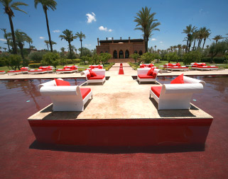 In diesem hinreißenden urbanen Resort wird zeitgenössisches Design mit der einzigartigen Architektur Marrakeschs zu einem fantastischen Gesamtbild zusammengefügt. Dieses 2006 eröffnete Hotel mit seinem drei Hektar großen Park und den fünf typisch marokkanischen Villen, mit Spitzbögen und roten Wänden, die extra für dieses Hotel gestalteten rot-weißen Gartenmöbel, ein 32 Meter langer, mit rotem Email ausgekleideter Pool, alles das macht das Hotel schon jetzt zu einem Klassiker.